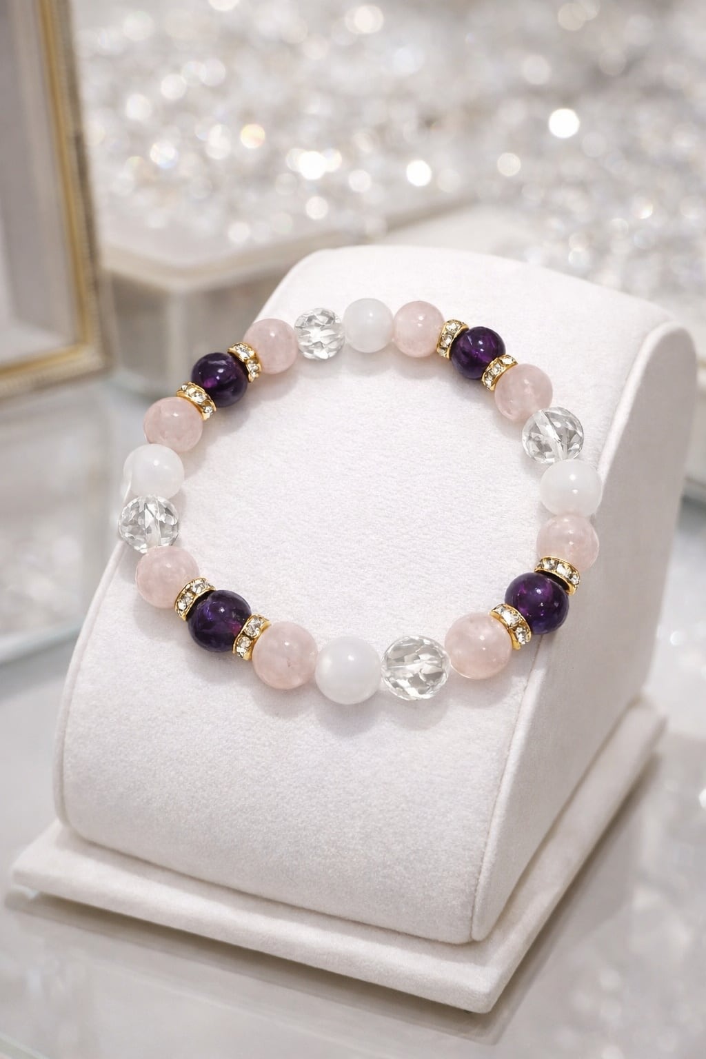 アメジスト×ローズクォーツ×ムーンストーン×クリスタルブレスレット