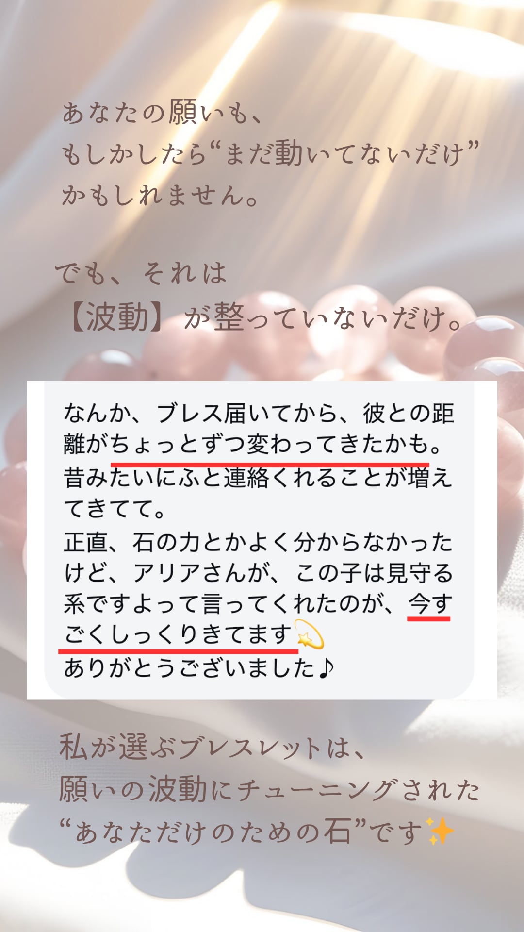 • 朝、そっと手首に通しながら「私は大丈夫」と心で唱える